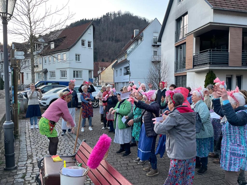 Der Schwarzwaldverein Tennenbronn traf sich kürzlich zu seiner, mittlerweile, obligatorischen Städteführung. Putzfee Wilma Strupferer hatte sich bereiterklärt, den Tennenbronnern Einiges über Wolfach und ihrem Hobby, dem Putzen, näher zu bringen. So mussten als Erstes Kittel und Schürzen übergestreift werden. Die einen oder anderen bekamen auch noch einen Kopfschmuck aus Putzlumpen. Nachdem sie erklärte, wie man solche Putzlumpen richtig auszuwringen hat, oder einem Mann mit Hilfe von diesem Teil auch näherkommen kann, ging es zu vielen markanten Stellen in Wolfach. Sie berichtete über viele interessante, stadtgeschichtliche Ereignisse, über die Flösser, die reiche Innenstadt, die ärmere Vorstadt und über die großen Brände.